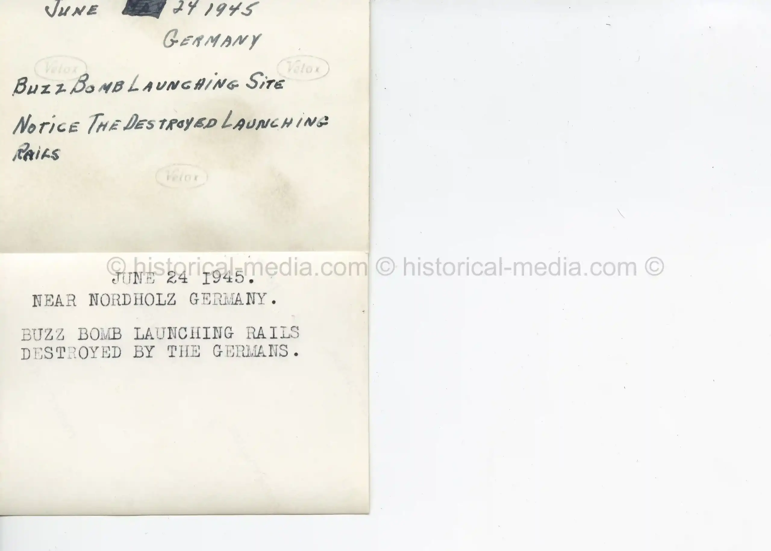 2X USGI PHOTOS CAPTURED V-1 LAUNCHING SITE – 1945