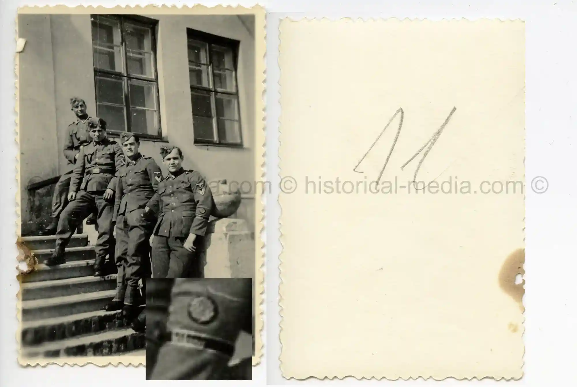 4X WAFFEN-SS PHOTOS - WIKING SOLDIERS POSE ON STAIRS + CUFFTITLE