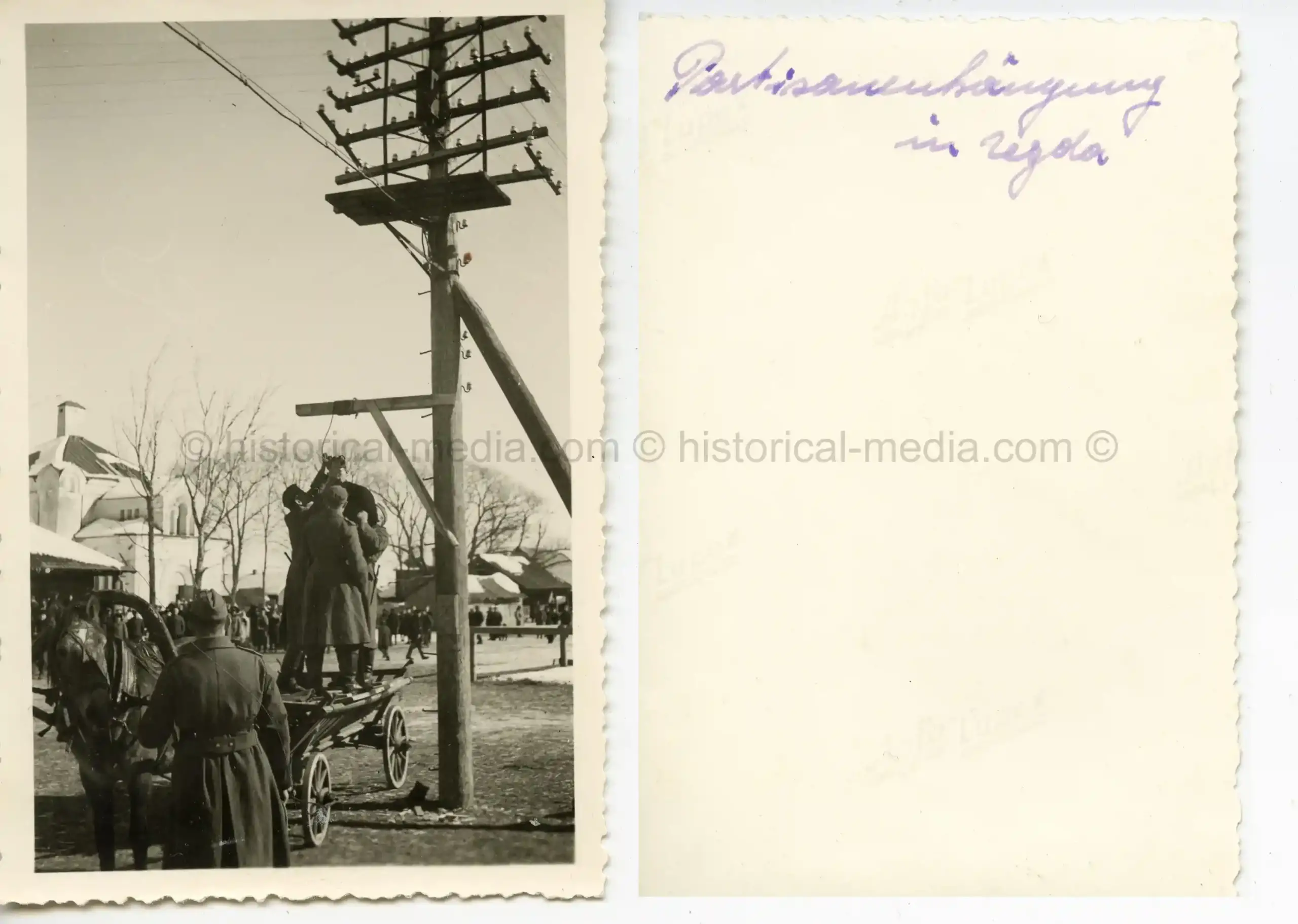 GERMAN PHOTO OF PARTISAN BEING HANGED IN REZDA, POLAND #1