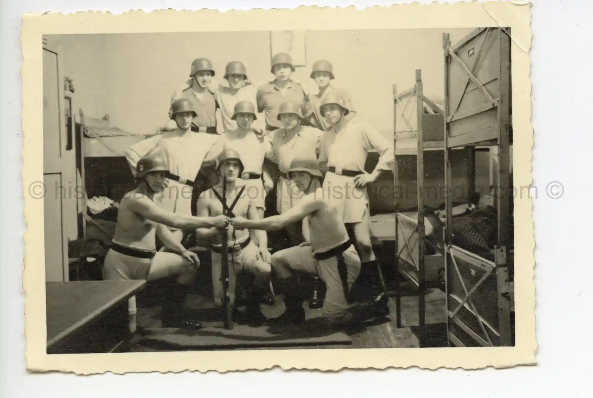 WAFFEN-SS PHOTO – SOLDIERS IN SS HELMETS GOOF OFF – BUDENZAUBER