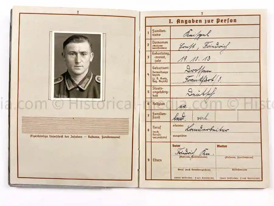 WEHRPASS - 19. & 246. INFANTERIE DIVISIONS - EK2 AWARDED FOR POLAND CAMPAIGN - KIA RUSSIA 1943