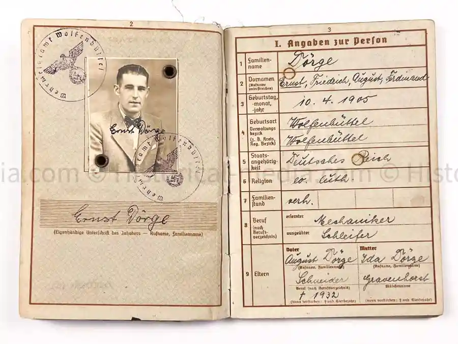 Luftwaffe Wehrpass issued to Gefreiter Ernst DÖrge. He served in Flak Regiment 36. Good campaign entries for POLAND 1939 as well as FRANCE 1940.